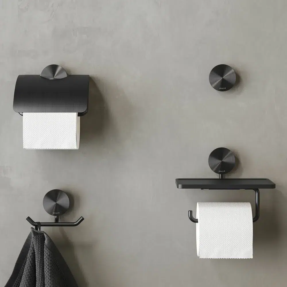 Grazie all’audace finitura nera in metallo spazzolato, la collezione di accessori da bagno Opal di Geesa attira davvero l’attenzione nel bagno. Il nero offre un look lussuoso, elegante e anche audace. Questa collezione di accessori da bagno si combina perfettamente con altri stili di bagno.
