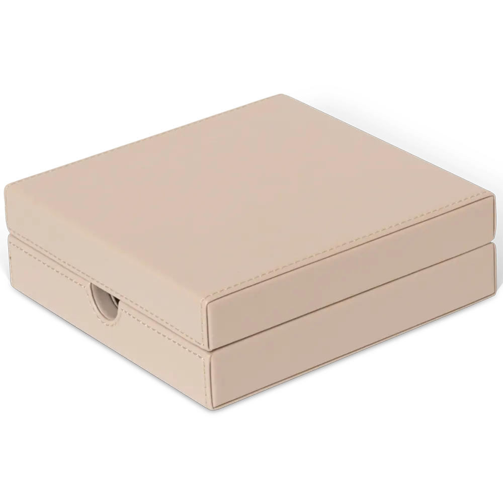 • Cofanetto per capsule caffè sabbia per hotel :ecopelle di colore sabbia naturale con cuciture