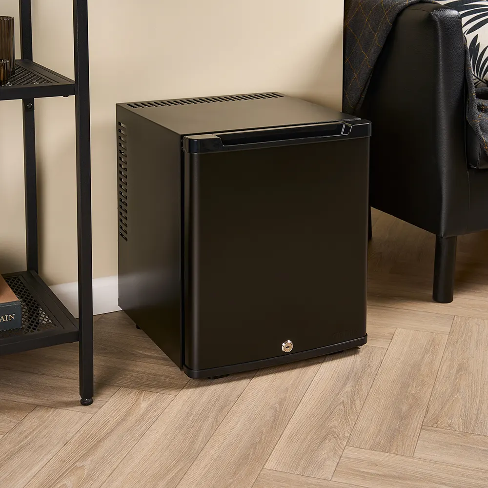 ETON minibar hotel 20L a porta cieca – una soluzione compatta, elegante e silenziosa per camere e suite. Dotato di serratura (2 chiavi incluse), apertura a destra o a sinistra e interno bianco con luce LED per una migliore visibilità di bevande e snack. Progettato per installazioni integrate (rispettando gli spazi di ventilazione).