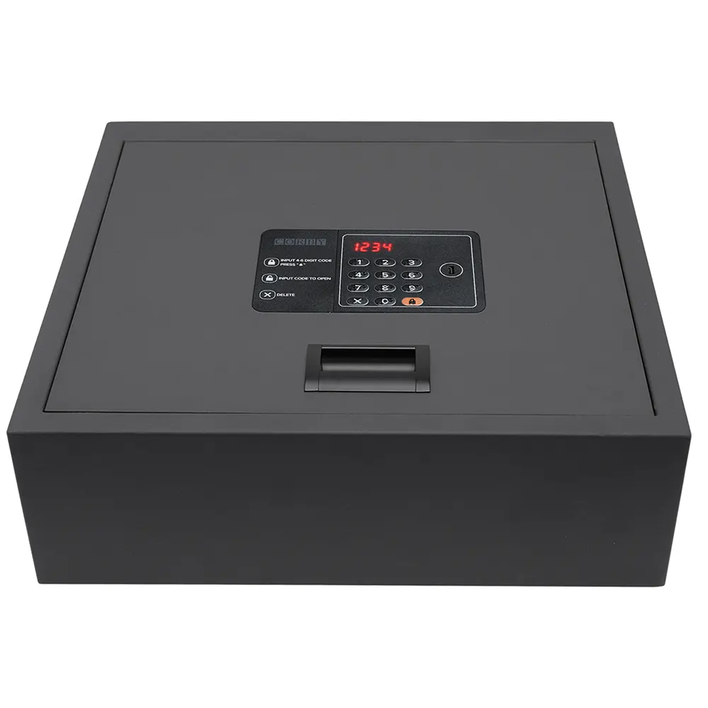 MAYFAIR cassaforte digitale open top per hotel โ soluzione discreta per la custodia in camera di oggetti di valore, progettata per contenere laptop fino a 15โ. Dotata di pannello digitale con braille, apertura assistita a molla e solida struttura in acciaio. Fornita con chiave e batterie per unโinstallazione immediata.