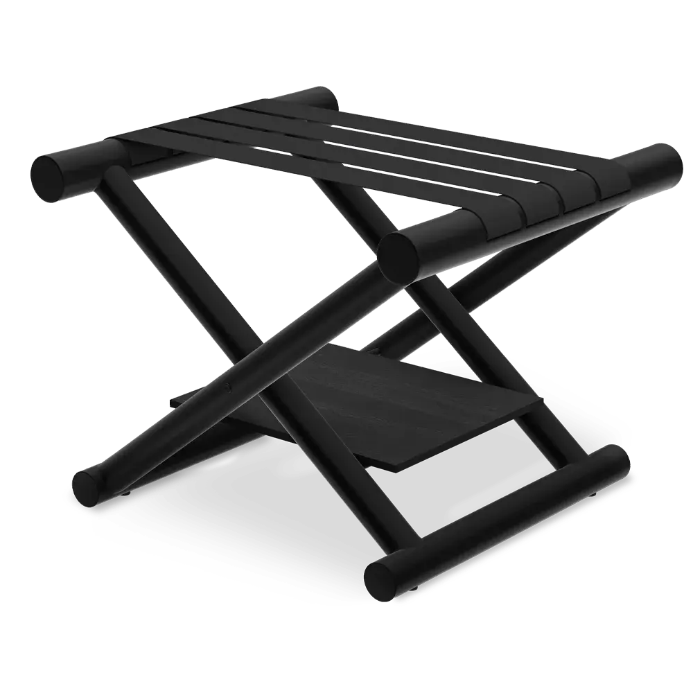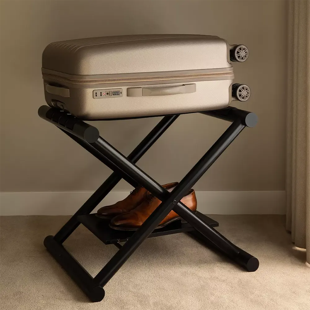 This freestanding luggage rack features four durable nylon straps and a convenient lower shelf for shoes, bags or travel essentials. A smart choice for hotels, resorts, serviced apartments and high-end hospitality interiors.