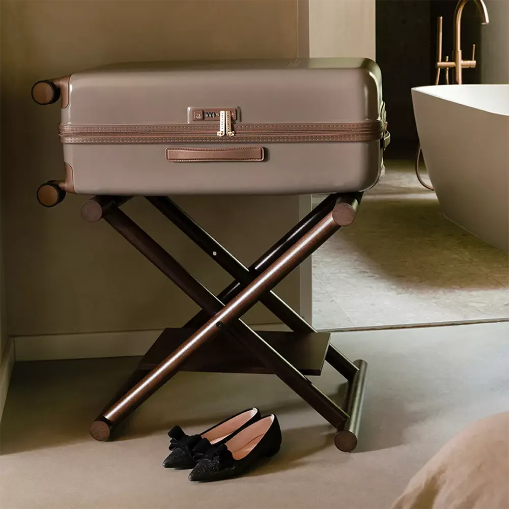 This walnut hotel luggage rack is ideal for hotels, boutique hotels, resorts, guest houses and serviced apartments that want to improve the guest experience with useful in-room accessories. Bari combines a compact footprint with everyday practicality, making it easier for guests to store and access their luggage during the stay.